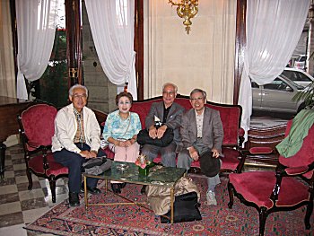 | ホテルのロビーにて、3人の校長先生が勢ぞろい | 部屋は重厚な雰囲気、適度な広さで快適でした。 |