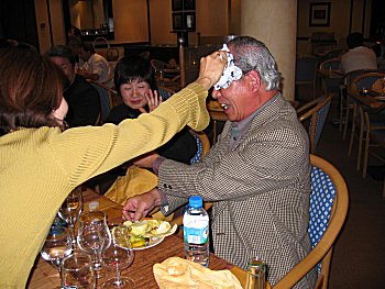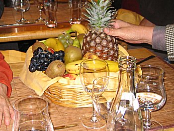 草野事務局長のポークが生焼けだったそうで、汗を拭いてもらいながらフルーツのやけ食い。 |