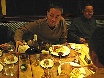 松宮さんがワインをサービスしてくれます。(ワインの銘柄忘れた)メインディッシュはポークステーキとパスタ。 |