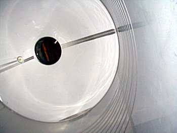 | ステンレスタンクの下方の窓の中から上に向け写したところ |
