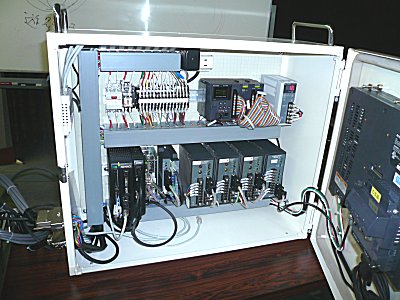 | 制御盤内部、画像処理コントローラやPLCなどが見えます |