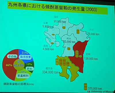 | 九州各県の焼酎カスの発生量、特に鹿児島・宮崎が多い |