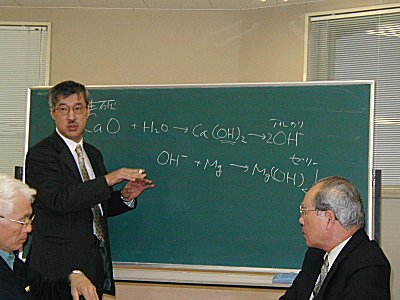 なぜ生石灰を入れると固まるか濱田先生が説明中