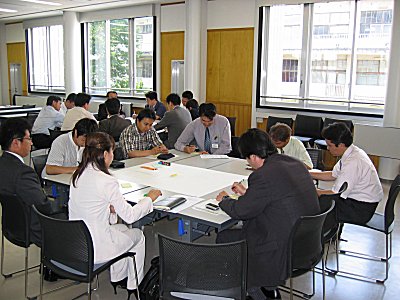 | 短い時間で意見を出し合い、グループとして発表しなければならないので真剣です。 |