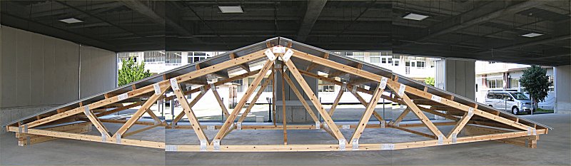 トラス構造のテスト 3/13高専専攻科棟の1階部分で組み立てテストを行いました。作業は4時間程度で終了しました。3/22に解体・撤去の予定です。 |