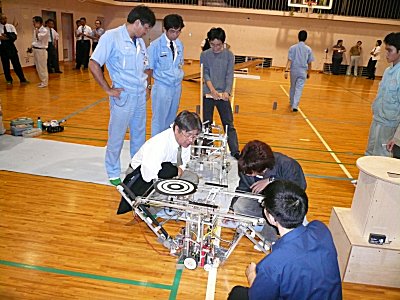 | 今年のロボコンは九州沖縄大会が全国のトップをきって10月8日に行われるため、昨年より1ヶ月も早く見学会を開催しました。今年もシーソー渡りや子機にジャンプさせるなど難しい内容のようです。 九州沖縄大会の結果は、昨年に引き続きデザイン賞を受賞し、全国大会へ推薦されました。おめでとうございます。全国大会は11月26日両国国技館で行われます。 九州沖縄大会の結果 都城高専Aチーム Rain Bow デザイン賞 全国大会出場 (審査員推薦) ロボコンオフィシャルページ http://www.official-robocon.com/jp/kosen/kosen2006/ |