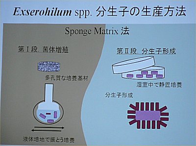 | カビはタンク培養ができないのでスケールアップがむずかしい。現在使われているのはスポンジマリックス法である。 |