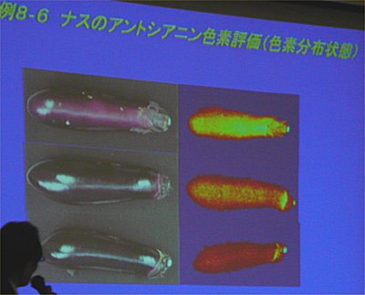 | 永田教授が研究中の非破壊検査ではアントシアニンの含有量がわかる。 |