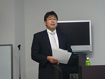 最近、地球温暖化など環境問題が大きくクローズアップされ、企業もISO14001など環境マネジメントに取り組む必要がでてきています。1月度例会は新年会の前に特別講演として岩切環境技術(株)社長の岩切重人氏により「環境マネジメントシステム」の講演をしていただきました。その後「ほたる」にて新年会を行い、各自今年の抱負を発表するなど大いに盛り上がりました。(今回企画担当、下森さん、川田さん、鮫島さん) |