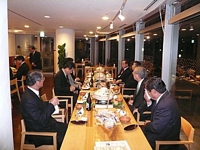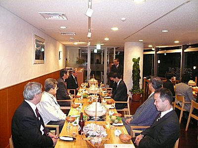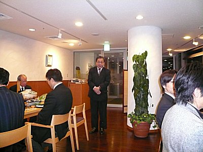 | レストラン「ほたる」にて新年会。司会は川田社長 |