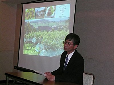 | 本日の講演は山内さんの「都城ワイナリーについて」ワイナリー設立のいきさつから現在の状況まで詳しく説明していただきました。また今後の事業展開について会員の協力が不可欠なことなどの話がありました。 |