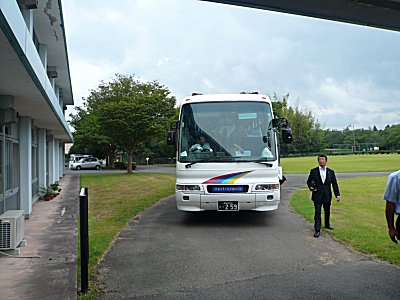 | 大型バスで移動 |