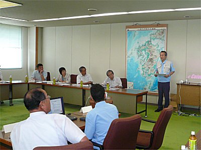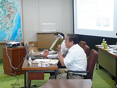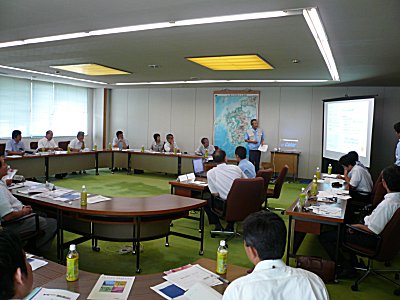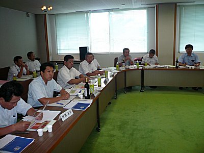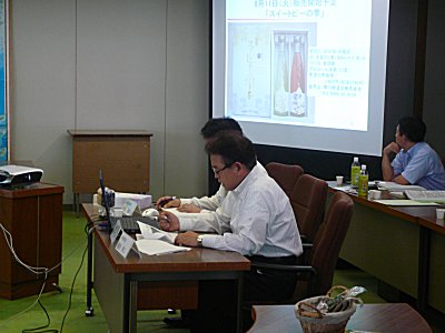 | 宮崎県議会「景気・雇用対策特別委員会」(満行潤一委員長)の県内調査があり、霧島工業クラブ及び会員企業の農商工連携関係の取り組みを発表しました。特別委員会の議員12名と地元選出議員(蓬原正三議員と萩原耕三議員)及び宮崎県職員、議会事務局職員など合計24名が調査に来られました。 出席理事:津曲さん、鮫島さん、川田さん、山内さん、下森さん、朝倉 他各社より説明などで計5名出席 発表内容 @.霧島工業クラブの概要と農商工連携クラスターづくりについて 専務理事 朝倉 脩二 (社団法人霧島工業クラブ事務局長) A.ハイパワーLEDの開発と農林漁業分野での利用について 代表理事 津曲 洋一 ((株)イーコロール 代表取締役社長) B.すい王の茎葉を利用した健康食品の開発について 理事 川田 幸典 ((株)匠 代表取締役社長) C.都城ワイナリーの現状と今後の展開 理事 山内 正行 ((有)都城ワイナリー 代表取締役) D.農産物の未利用部分を利用した機能性製品の開発について 理事 下森 康玄 ((株)下森建装 代表取締役) |