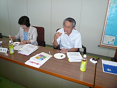 | 川田社長はすい王のお茶や茎の加工品などの開発について説明されました |