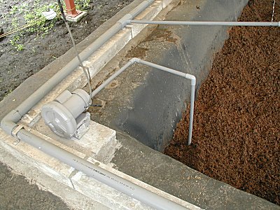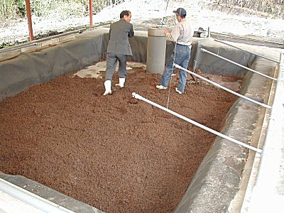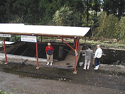 | 翌朝、御池の花岡養豚訪問、エクラスクリーンシステム見学を行いました。表面の切り返しを行っているところ。 |