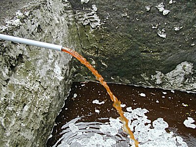 | 放流槽へ排出、BODはクリアーしているがエクラスチップの色が気になる。 |