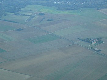パリ(シャルル・ド・ゴール空港)到着前、畑が広がる。 |