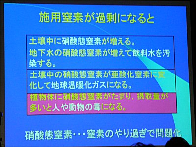 | 都城盆地の課題の一つ、硝酸態窒素の話も詳しく説明されました |