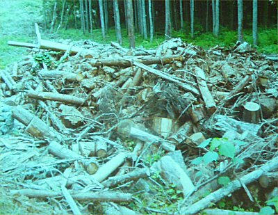 | 間伐した木材は放置される例が多い |