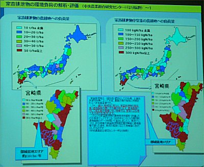 | 家畜排泄物の環境負荷の解析・評価によると都城盆地エリアでは約116t/ha/年と非常に大きい |
