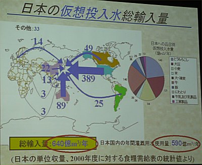 | 仮想水の輸入量はは日本国内の年間灌漑用水を上回っている。 |