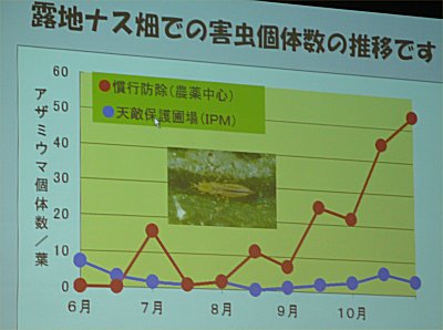 | 農薬を使わないということではなく、生物的防除に基盤を置いたIPM(総合的有害生物管理)。さらに生態系活用型IPMへと新しい取組みが始まっている。 |