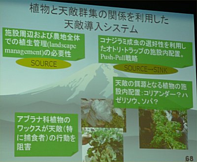 | 従来考えられていたよりも、畑の周辺にはさまざまな天敵が存在しており、そうした天敵資源を有効的に活用すべき |