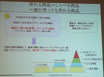 | しゃべる商品までブラッシュアップすると誰が売っても売れる商品となる |