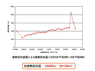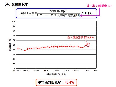 | 平均廃熱回収率は45.4%となり、廃熱回収にサーモサイフォンを利用することの有用性が確認できた。 |