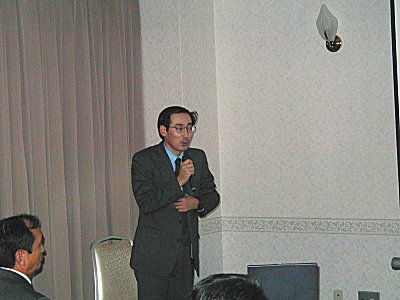 満行議員のあいさつ。本会議中の忙しいところを駆けつけていただきました。