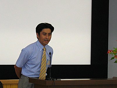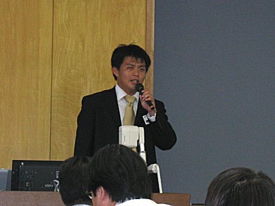 | 講演はスパークジャパン代表取締役の岡田憲明氏。宮大工学部時代から起業を志し、いろいろなことにチャレンジした体験を包み隠さず話して頂きました。「道を選ぶときには好きなことを選ぶ、好きな事をするからには簡単なことより、厳しく困難な事をやる」という言葉が印象に残りました。 |