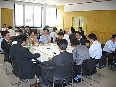 | 4つのグループに分かれ「起業・新産業創造・ものづくり」をテーマに話し合いました。 |