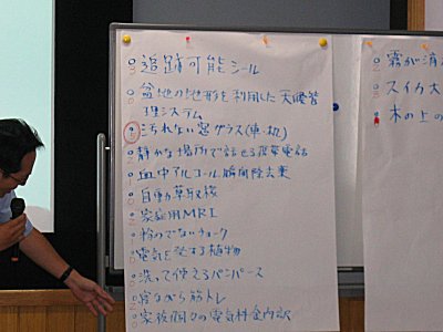 | Aグループの発表、「クリンクリンパッ!」というすべての汚れをはじく製品を開発し・・・ |