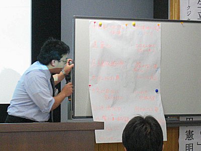 | 短い時間で意見を出し合い、グループとして発表しなければならないので真剣です。 |