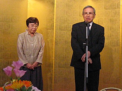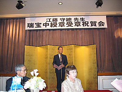 | 江藤先生の謝辞。皇居で天皇陛下に拝謁されたそうです。とてもお元気そうでした。 |