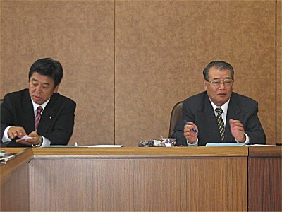 | 会派みらい会長の岩崎議員(右)と原議員 |
