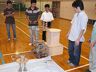 | 今年のロボコンは九州沖縄大会が全国のトップをきって10月8日に行われるため、昨年より1ヶ月も早く見学会を開催しました。今年もシーソー渡りや子機にジャンプさせるなど難しい内容のようです。 九州沖縄大会の結果は、昨年に引き続きデザイン賞を受賞し、全国大会へ推薦されました。おめでとうございます。全国大会は11月26日両国国技館で行われます。 九州沖縄大会の結果 都城高専Aチーム Rain Bow デザイン賞 全国大会出場 (審査員推薦) ロボコンオフィシャルページ http://www.official-robocon.com/jp/kosen/kosen2006/ |