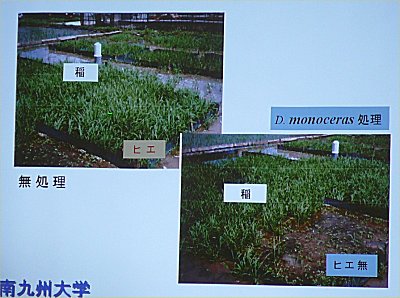 | 選択的にヒエだけを枯らすカビの農地での実験 |