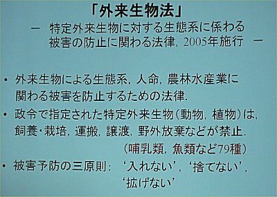 | 外来生物による生態系への影響が大きくなっているので「外来生物法」が施行された |