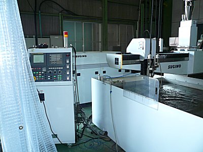 | 今年アブレシブジェットカッターを導入。水に研磨剤を添加して水圧で切断。材料は金属以外もOK |