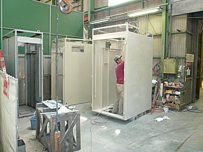 | 製缶部門で塗装中 |