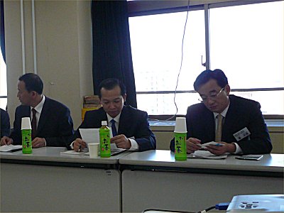 中国重慶市江津区から友好訪問団(6名)が来られ、市役所で工業振興課、霧島工業クラブと意見交換を行いました。 重慶市江津区友好訪問団 蹇 沢西(ケン タクセイ)氏 重慶市江津区人民政府常務副区長(訪問団長) 羅 光武(ラ コウブ)氏 重慶市江津区人民政府事務室主任 韓 廷(カン テイクン)氏 重慶市江津区徳感工業園管理委員会主任 王 忠効(オウ チュウコウ)氏 重慶市江津区米花飴株式会社社長 カク 小平(カク ショウヘイ)氏 重慶市江津区酒厂株式会社副社長 周 錫倫(シュウ セキリン)氏 重慶市海倫地毯株式会社社長 霧島工業クラブ出席者 会員:朝倉、草野、川田、寺薗 顧問:足立先生、金澤先生、武櫻氏(コンサルタント) 都城市役所工業振興課:福永主幹、細山田副主幹 都城市役所生活文化課:常明主幹、新宮主査、艾豊氏(国際交流員) |