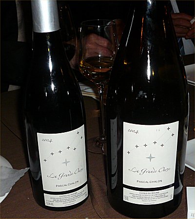 | 南ローヌのパスカル・シャロン「La Grande Ourse 2004」 AOCコート・デュ・ローヌの認定を受けたことを示すラベルが下に貼ってある。ラベルに描かれているのは北斗七星、La Grande Ourseは大熊座の意味で北斗七星は大熊座の一部 |