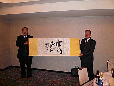 | 王さんから霧島工業クラブに立派な掛け軸を頂きました。「寒竹春風」 |