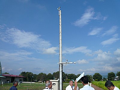 | 気象観測装置、雨が降ると温室に通信され窓を閉めたりできる |