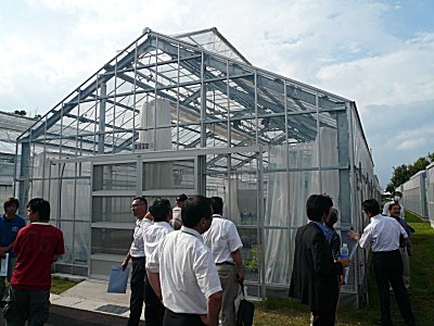 | ガラスやアクリルの温室が20以上あります。1棟が1000〜1500万円だと聞いて一同びっくり |