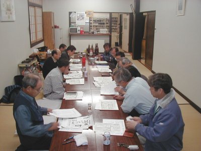 17:30第一部開始。真剣な討議が約一時間続きました。(ビールの缶は討議の進行を早くするために置いてあるだけで飲んでいません)