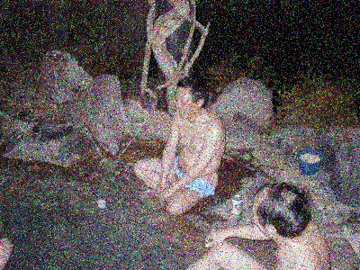 九南保養所自慢の露天風呂でしばし休息する。(モザイクを除去した写真をご入用の方は朝倉までメールで!)