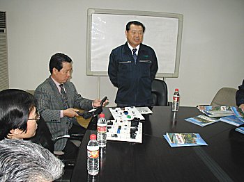 | 蘇州凱旋機電元件有限公司メモ 1994年に調印し1995年9月より生産開始。現在正社員130名、パートを入れて370名(うち女性8割)で操業中。常駐の日本人は3名だけである。ホンダの部品加工が主である。自社製品を中国で作り日本・欧米に輸出するのが理想。2001年売上約7億円。 工場内は整理整頓が行き届き、また従業員は笑顔で挨拶するなどかなり教育が行き届いていると感じました。増値税17%の話など8年間の間にいろいろ苦労されたノウハウをお聞きすることができました。 |