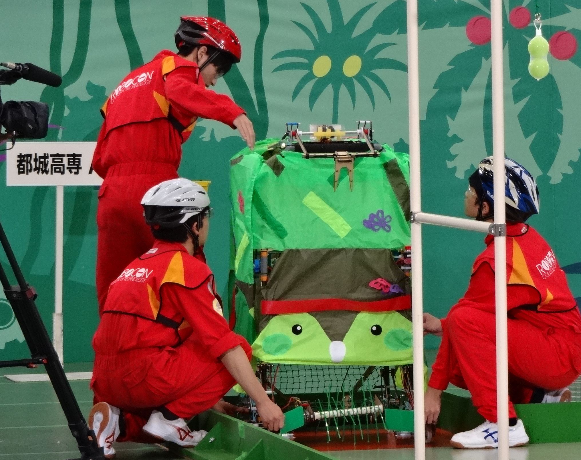 都城高専からは、都城Aチーム「ペケペケ!カカポ&コカポ」及び都城Bチーム「ころころ!スクワロール!」が参加しました。両チームとも他に類のないユニークなアイデアでロボット製作に挑みましたが、競技中に十分その性能を披露することができず、残念ながら予選グループで敗退となり決勝には進めませんでした。ただ、Bチームは,そのユニークで一線を画したアイデアが認められ、協賛企業の株式会社安川電機から特別賞をいただきました。
